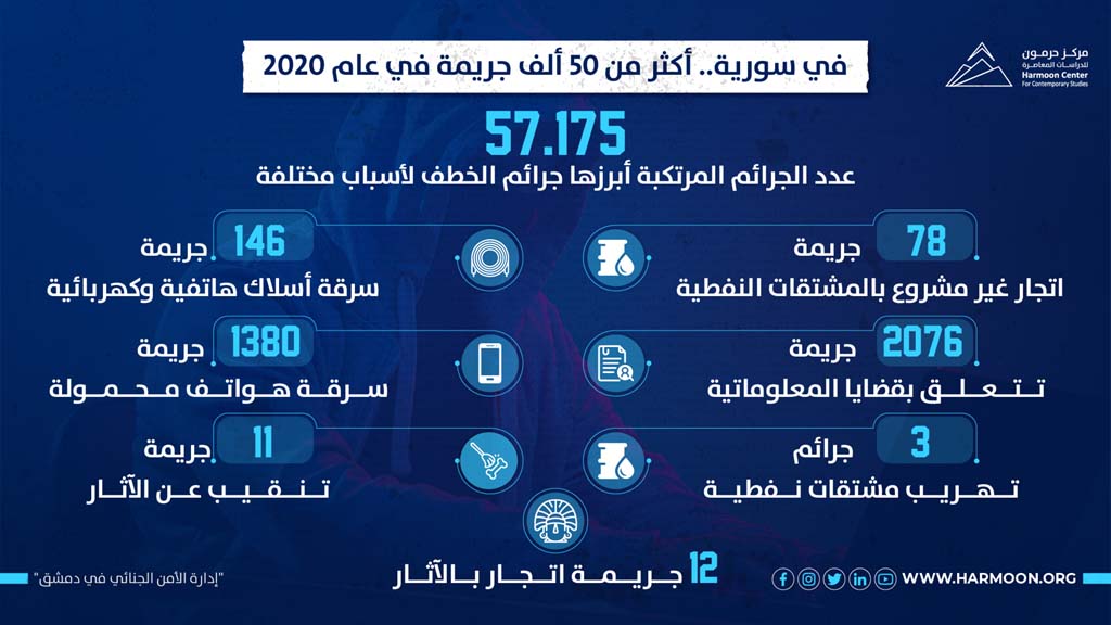 في سورية.. أكثر من 50 ألف جريمة في عام 2020 نشر في 26 شباط/فبراير ,2021 مشاركة مشاركة المصدر| إدارة الأمن الجنائي في دمشق مشاركة المقال Facebook Twitter Copy Link Print مشاركة مقالات أخرى للكاتب شرعنة عنف الدولة في سورية أزمة اللاجئين السوريين وتهديدات الأمن العالمي (دراسة حالة ألمانيا) تصعيد أزمة اللاجئين السوريين في لبنان: الدوافع والمآلات اترك تعليقا اترك تعليقاً إلغاء الردلن يتم نشر عنوان بريدك الإلكتروني. الحقول الإلزامية مشار إليها بـ *التعليق * الاسم * البريد الإلكتروني * احفظ اسمي، بريدي الإلكتروني، والموقع الإلكتروني في هذا المتصفح لاستخدامها المرة المقبلة في تعليقي. المقال السابق الأمم المتحدة تدق ناقوس الخطر… انعدام الأمن الغذائي في سورية المقال التالي ما تداعيات وصول رئيس عسكري إلى إيران؟