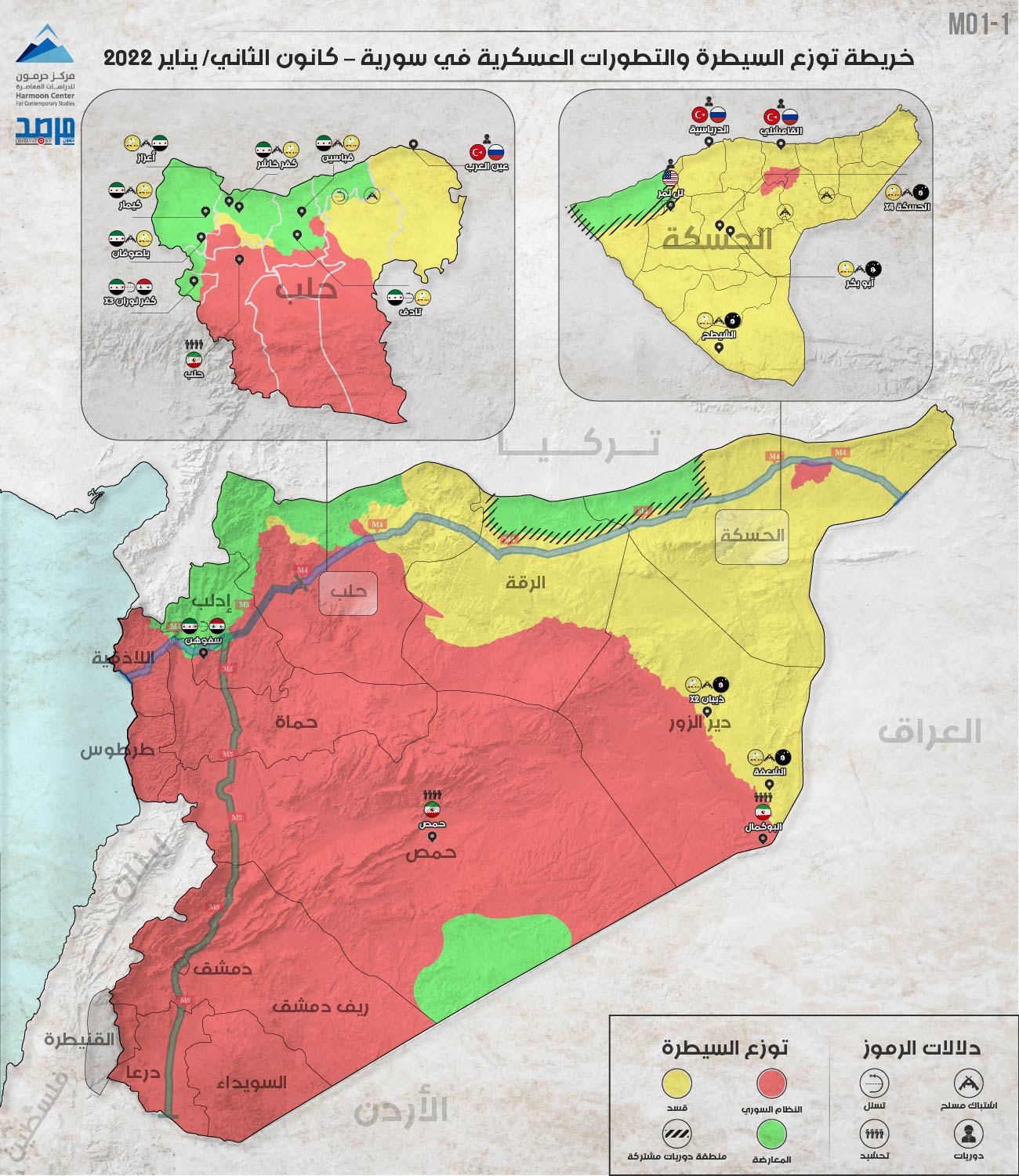 كانون الثاني 2022.. خريطة توزع السيطرة في سورية نشر في 18 شباط/فبراير ,2022 مشاركة مشاركة مشاركة المقال Facebook Twitter Copy Link Print مشاركة مقالات أخرى للكاتب شرعنة عنف الدولة في سورية أزمة اللاجئين السوريين وتهديدات الأمن العالمي (دراسة حالة ألمانيا) تصعيد أزمة اللاجئين السوريين في لبنان: الدوافع والمآلات اترك تعليقا اترك تعليقاً إلغاء الردلن يتم نشر عنوان بريدك الإلكتروني. الحقول الإلزامية مشار إليها بـ *التعليق * الاسم * البريد الإلكتروني * احفظ اسمي، بريدي الإلكتروني، والموقع الإلكتروني في هذا المتصفح لاستخدامها المرة المقبلة في تعليقي. المقال السابق مقارنة لأسعار المواد الأساسية بين مناطق توزع السيطرة في سورية (كانون الأول 2021) المقال التالي تجليات الدولة الأمنية السورية في قطاع التعليم العالي