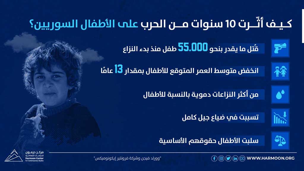 كيف أثّرت 10 سنوات من الحرب على الأطفال السوريين؟ نشر في 14 آذار/مارس ,2021 مشاركة مشاركة المصدر: وورد فيجن وشركة فرونتير ايكونوميكس مشاركة المقال Facebook Twitter Copy Link Print مشاركة مقالات أخرى للكاتب شرعنة عنف الدولة في سورية أزمة اللاجئين السوريين وتهديدات الأمن العالمي (دراسة حالة ألمانيا) تصعيد أزمة اللاجئين السوريين في لبنان: الدوافع والمآلات اترك تعليقا اترك تعليقاً إلغاء الردلن يتم نشر عنوان بريدك الإلكتروني. الحقول الإلزامية مشار إليها بـ *التعليق * الاسم * البريد الإلكتروني * احفظ اسمي، بريدي الإلكتروني، والموقع الإلكتروني في هذا المتصفح لاستخدامها المرة المقبلة في تعليقي. المقال السابق 10 سنوات من الثورة.. حصيلة الضحايا المدنيين منذ 2011 المقال التالي عشر سنوات من الثورة.. أبرز الانتهاكات بحق المرأة السورية