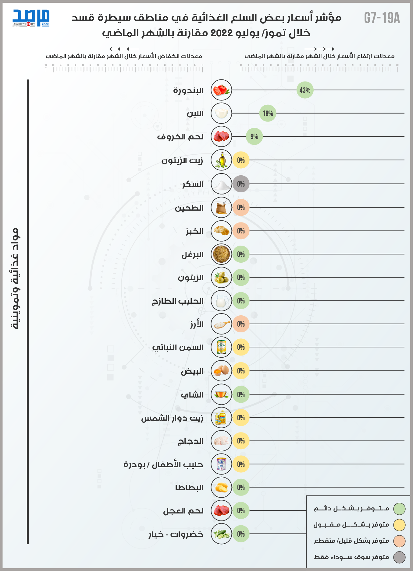 مؤشر أسعار بعض السلع الغذائية في مناطق سيطرة قسد خلال تموز 2022 مقارنة بالشهر الماضي
