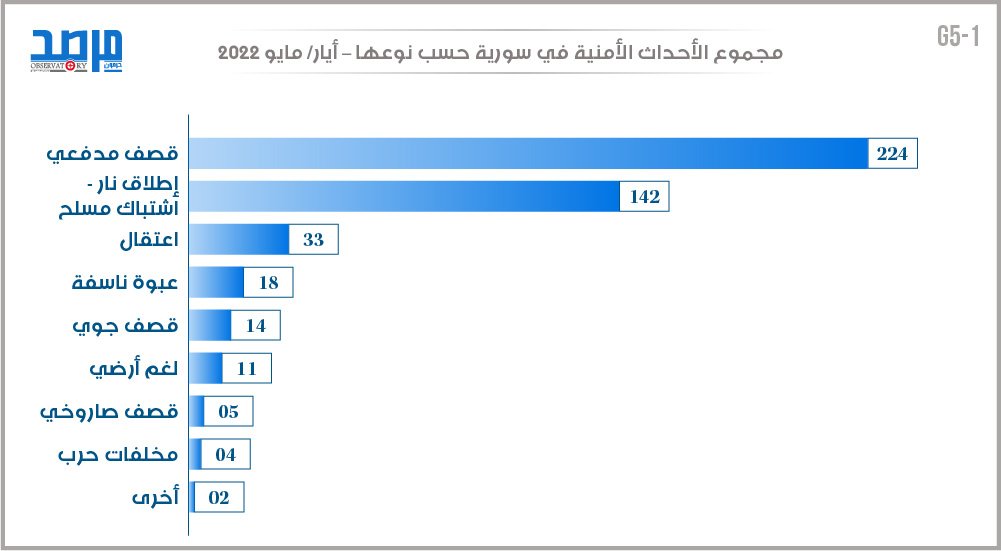 مجموع الأحداث الأمنية في سورية حسب نوعها (أيار 2022)