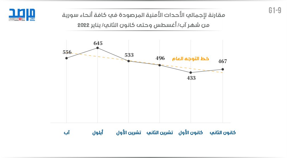 مقارنة لإجمالي الأحداث الأمنية المرصودة في كافة أنحاء سورية نشر في 5 نيسان/أبريل ,2022 مشاركة مشاركة مشاركة المقال Facebook Twitter Copy Link Print مشاركة مقالات أخرى للكاتب شرعنة عنف الدولة في سورية أزمة اللاجئين السوريين وتهديدات الأمن العالمي (دراسة حالة ألمانيا) تصعيد أزمة اللاجئين السوريين في لبنان: الدوافع والمآلات اترك تعليقا اترك تعليقاً إلغاء الردلن يتم نشر عنوان بريدك الإلكتروني. الحقول الإلزامية مشار إليها بـ *التعليق * الاسم * البريد الإلكتروني * احفظ اسمي، بريدي الإلكتروني، والموقع الإلكتروني في هذا المتصفح لاستخدامها المرة المقبلة في تعليقي. المقال السابق نسبة الأحداث في المواقع العسكرية في سورية تبعًا للجهات المسؤولة (كانون الثاني 2022) المقال التالي مقارنة لأسعار المواد بين مناطق توزع السيطرة في سورية (كانون الثاني 2022)