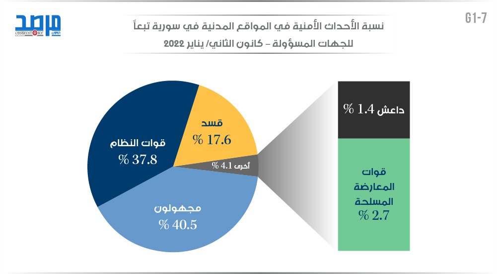 نسبة الأحداث الأمنية في المواقع المدنية في سورية تبعًا للجهات المسؤولة نشر في 4 نيسان/أبريل ,2022 مشاركة مشاركة مشاركة المقال Facebook Twitter Copy Link Print مشاركة مقالات أخرى للكاتب شرعنة عنف الدولة في سورية أزمة اللاجئين السوريين وتهديدات الأمن العالمي (دراسة حالة ألمانيا) تصعيد أزمة اللاجئين السوريين في لبنان: الدوافع والمآلات اترك تعليقا اترك تعليقاً إلغاء الردلن يتم نشر عنوان بريدك الإلكتروني. الحقول الإلزامية مشار إليها بـ *التعليق * الاسم * البريد الإلكتروني * احفظ اسمي، بريدي الإلكتروني، والموقع الإلكتروني في هذا المتصفح لاستخدامها المرة المقبلة في تعليقي. المقال السابق توزع المواقع المسجّل بها أحداثًا أمنية حسب الجهات المسؤولة المقال التالي نسبة الأحداث في المواقع العسكرية في سورية تبعًا للجهات المسؤولة (كانون الثاني 2022)
