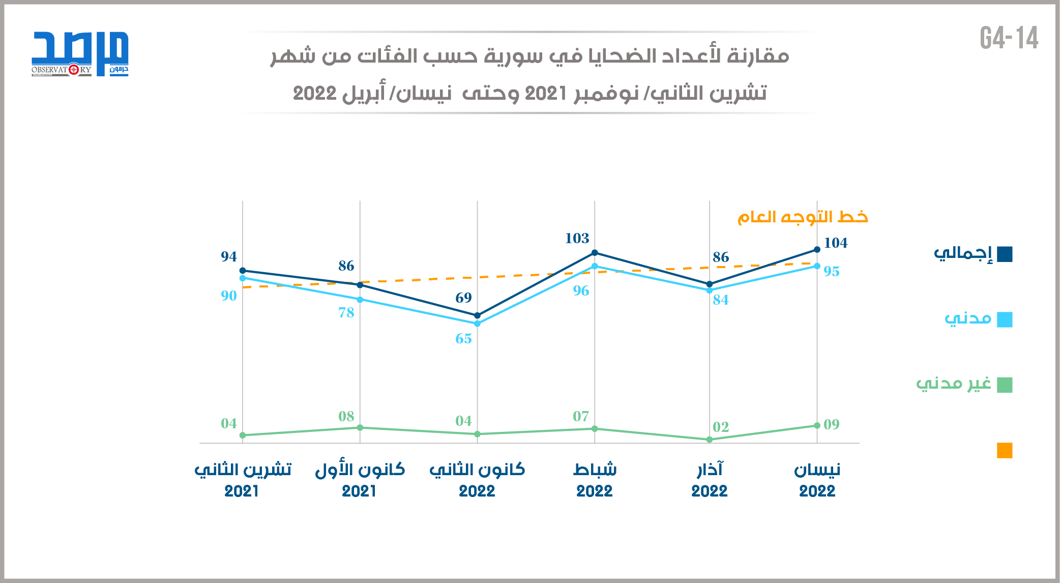 نيسان 2022.. مقارنة لأعداد الضحايا في سورية حسب الفئات
