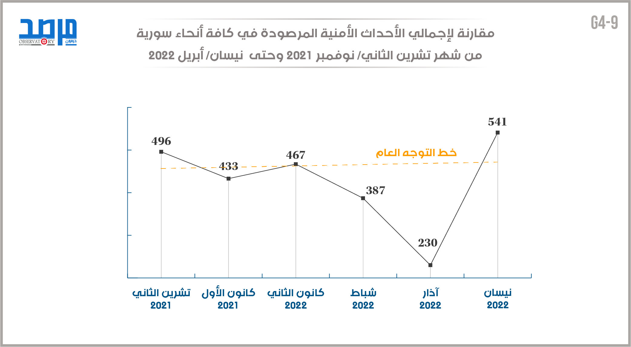 نيسان 2022.. مقارنة لإجمالي الأحداث الأمنية المرصودة في كافة أنحاء سورية نشر في 27 أيار/مايو ,2022 مشاركة مشاركة مشاركة المقال Facebook Twitter Copy Link Print مشاركة مقالات أخرى للكاتب شرعنة عنف الدولة في سورية أزمة اللاجئين السوريين وتهديدات الأمن العالمي (دراسة حالة ألمانيا) تصعيد أزمة اللاجئين السوريين في لبنان: الدوافع والمآلات اترك تعليقا اترك تعليقاً إلغاء الردلن يتم نشر عنوان بريدك الإلكتروني. الحقول الإلزامية مشار إليها بـ *التعليق * الاسم * البريد الإلكتروني * احفظ اسمي، بريدي الإلكتروني، والموقع الإلكتروني في هذا المتصفح لاستخدامها المرة المقبلة في تعليقي. المقال السابق نيسان 2022.. نسبة الأحداث في المواقع العسكرية في سورية تبعًا للجهات المسؤولة المقال التالي نيسان 2022.. خريطة توزع إجمالي الأحداث الأمنية في سورية