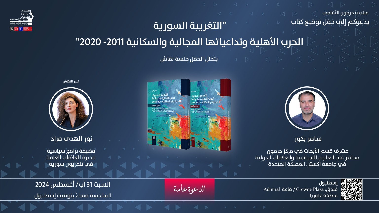 تفاجأت والزملاء العاملون في مركز حرمون يوم أمس بتعرّض المركز لحملة مغرضة، على إثر إعلان خبر عن توقيع كتابي الذي عنوانه: (التغريبة السورية: الحرب الأهلية وتداعياتها المجالية والسكانية 2011 – 2020). وأصفها بأنها حملة مغرضة لأن ما حدث كان أشبه بهجوم بالسلاح الأسود: الشتائم والسباب والاتهام والتهكّم، موجّه إلى شخصي وإلى مركز حرمون وإلى مؤسسات أخرى، وبدا واضحًا أن ذلك الهجوم يفتقر إلى الإنصاف، ويخلو من أي نقد ذي قيمة، وأنه بعيد كل البعد عن أي مناقشة موضوعية أو منطقية، والراية المرفوعة في ذلك الهجوم أنّ مركز حرمون انقلب على الثورة السورية، إذ بات يتبنى مفهوم “الحرب الأهلية” بدلًا من “الثورة السورية”.