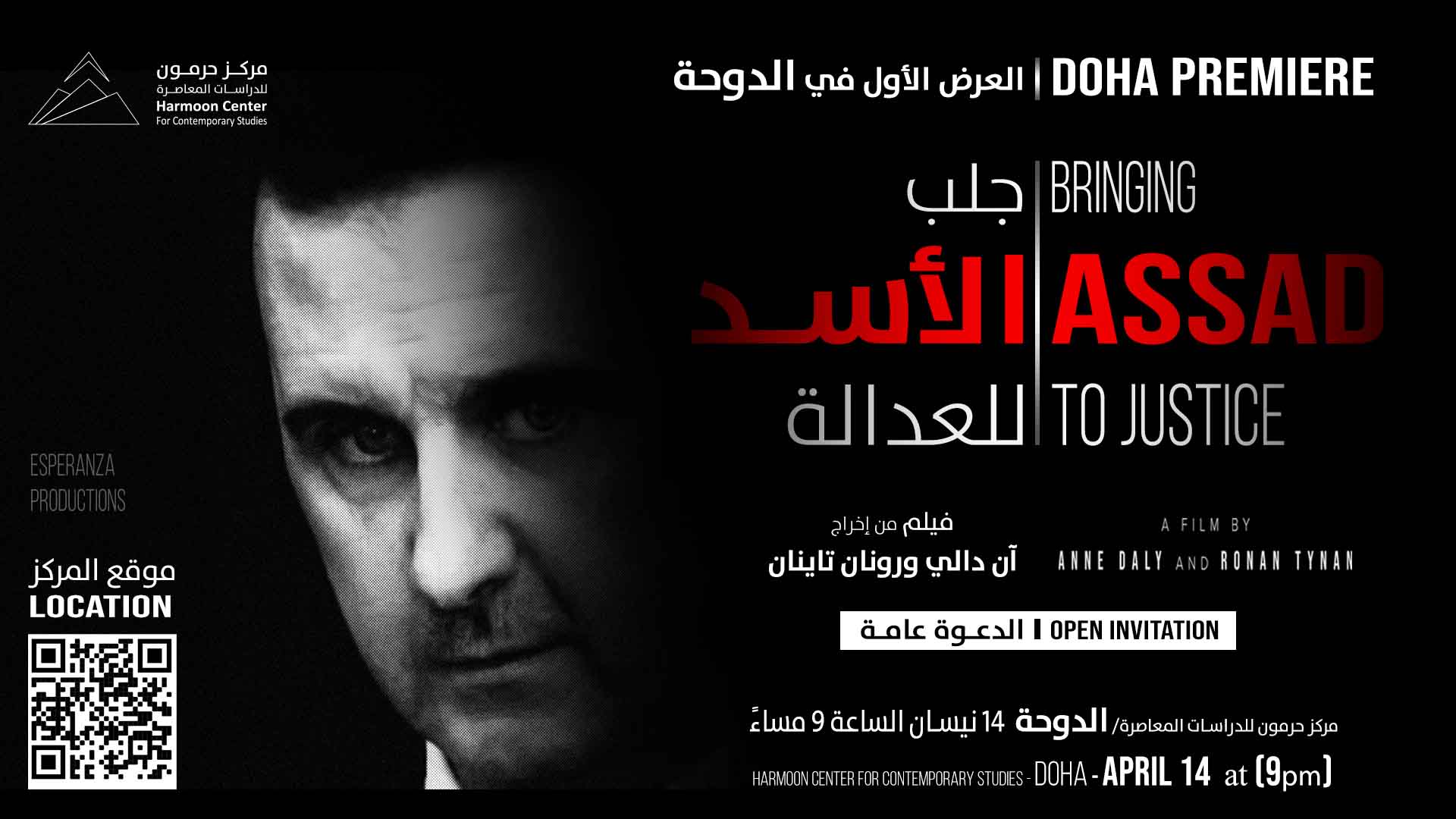 يتشرف مركز حرمون للدراسات المعاصرة – مكتب الدوحة، بدعوتكم يوم الخميس 14 نيسان/ أبريل 2022، الساعة الـ 9 مساءً، لمشاهدة العرض الأول في الدوحة للفيلم الوثائقي “جلب الأسد للعدالة“.