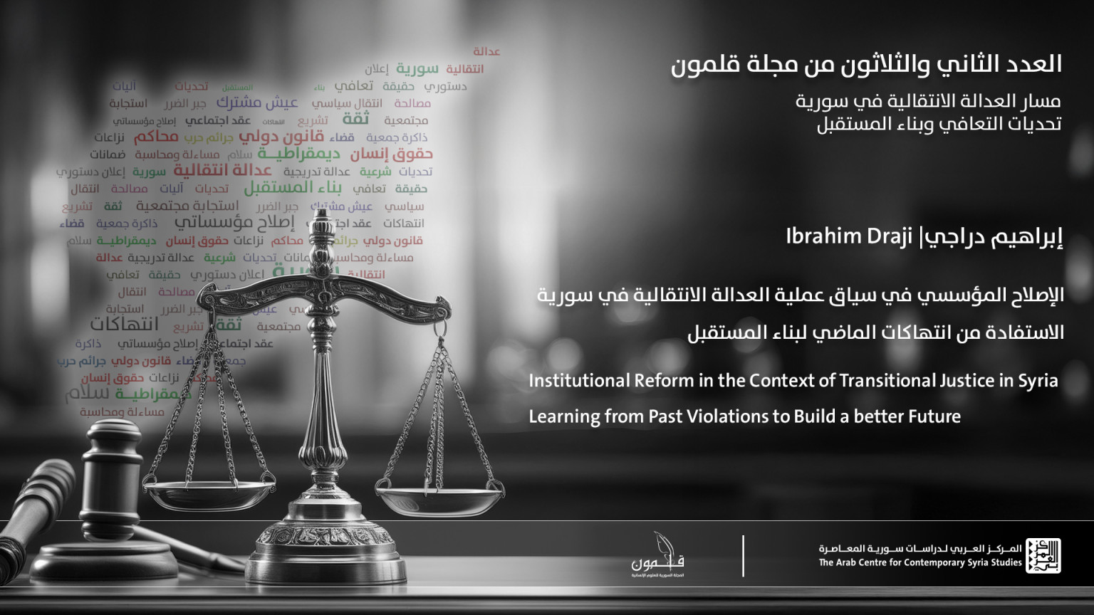 دراسة دراجي، وهو مستشار في مفوضية اللاجئين وأستاذ القانون الدولي في جامعة دمشق، منشورة في العدد الثاني والثلاثين من (قلمون: المجلة السورية للعلوم الإنسانية)، ضمن ملف عددها الخاص بـ “مسار العدالة الانتقالية في سورية: تحديات التعافي وبناء المستقبل“.