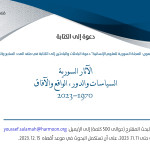 ينظّم المركز العربي لدراسات سورية المعاصرة أعمال المنتدى السنوي للدراسات السورية المعاصرة (الدورة الخامسة)، يومي 30 و31 آب/ أغسطس 2025، في العاصمة السورية دمشق.يتضمّن المنتدى مجموعة من الأوراق المحكّمة التي تتناول قضايا الحوكمة وإعادة الإعمار، وإصلاح التعليم والنقابات، وتحوّلات الخطاب السياسي والديني، وديناميات الطائفية، وأوضاع اللاجئين في دول الجوار والشتات، وأدوار الفاعلين المحليين والدوليين. ويخصّص مجموعة من الورشات لمناقشة قضايا…
