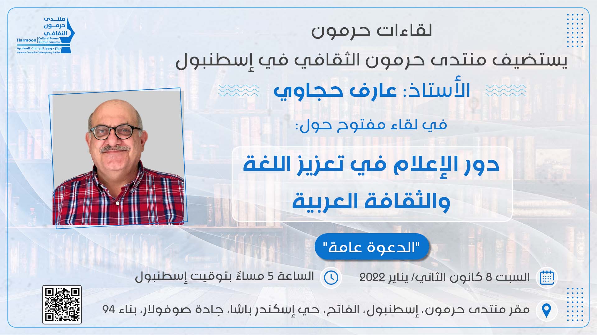 ويمكن متابعة اللقاء عبر البث المباشر في صفحة منتدى حرمون الثقافي في منصّة (فيسبوك)، على الرابط التالي: