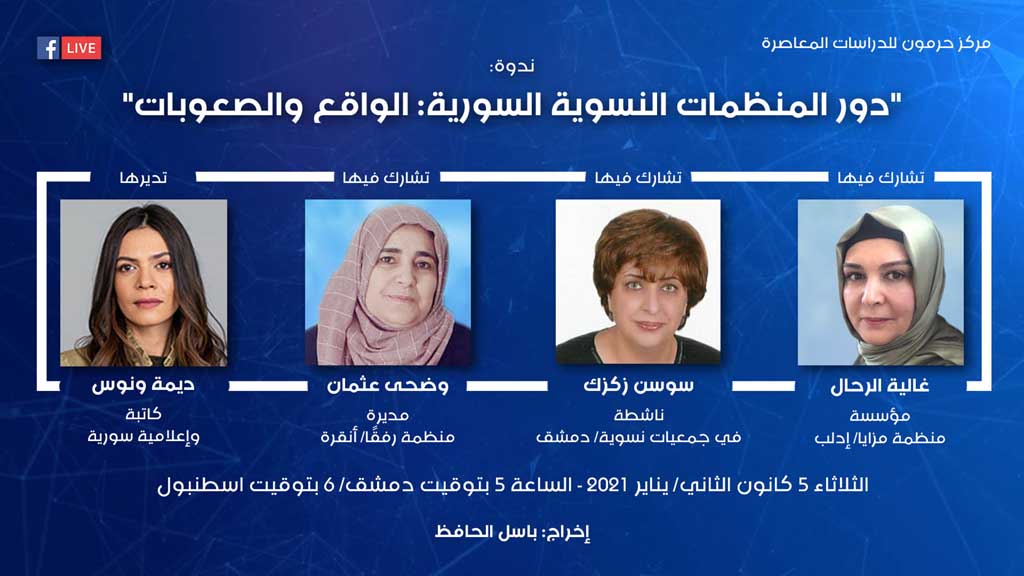ندوة لحرمون حول: “دور المنظمات النسوية السورية: الواقع والصعوبات”