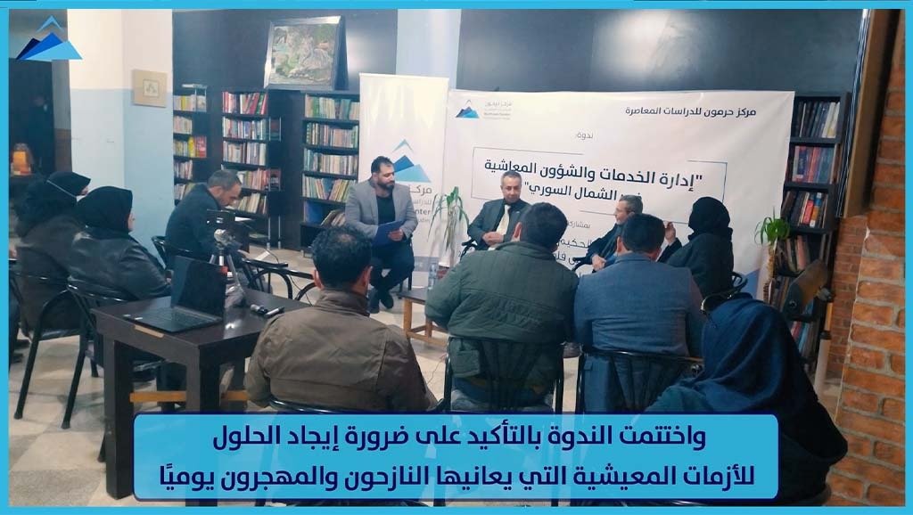 أقام مركز حرمون للدراسات المعاصرة، في 21 كانون الأول/ ديسمبر 2021، ندوة حوارية بعنوان “آليات إدارة الخدمات والشؤون المعيشية في الشمال السوري“، وذلك في مدينة عفرين بريف حلب الشمالي.