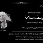 رحل الدكتور يوسف سلامة عن عالمنا، في الرابع من آذار/ مارس 2024، في مدينة مالمو بالسويد، عن عامر ناهز 78 عامًا، بعد معاناة مع المرض.