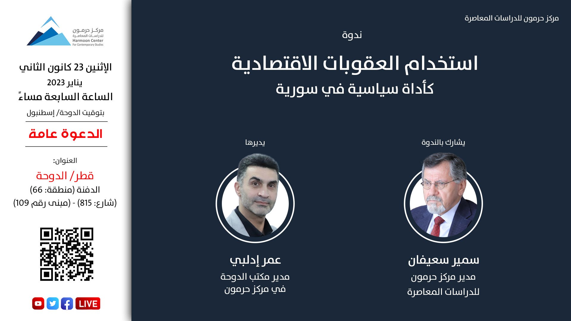 “حرمون” يناقش أثر “استخدام العقوبات الاقتصادية واستخدامها كأداة سياسية في سورية” في ندوة حوارية