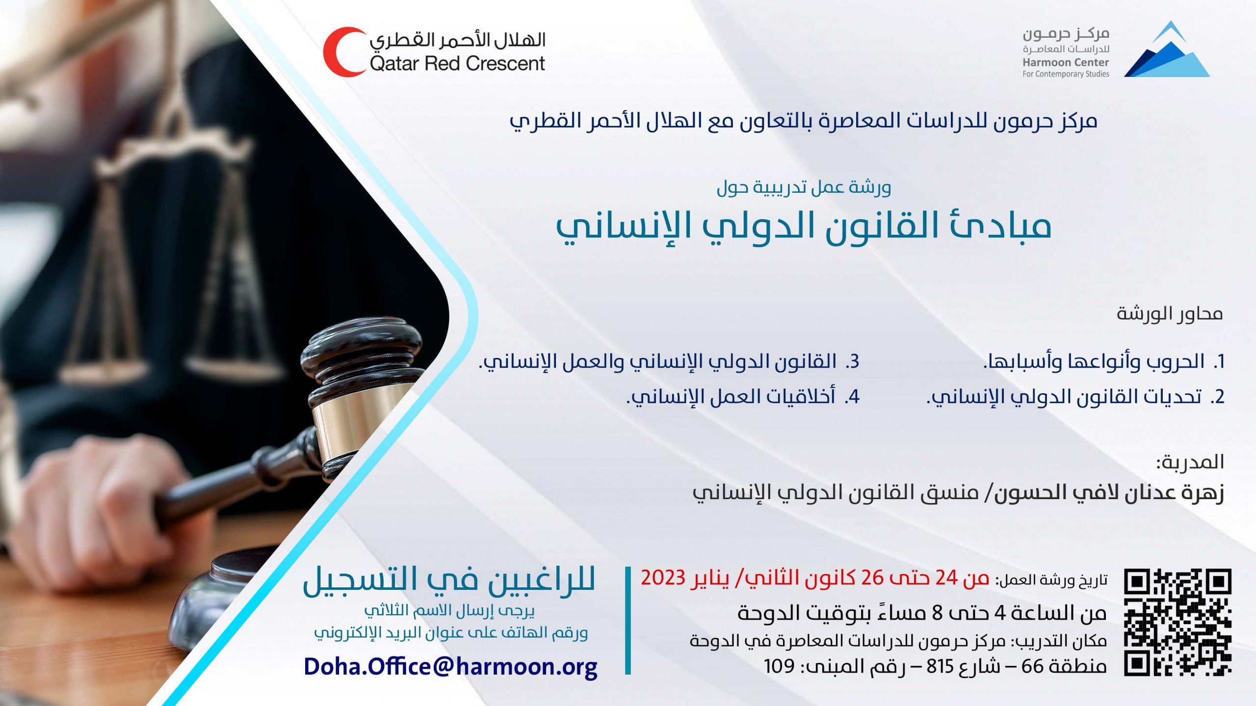 حرمون ينظم ورشة عمل تدريبية حول مبادئ القانون الدولي الإنساني
