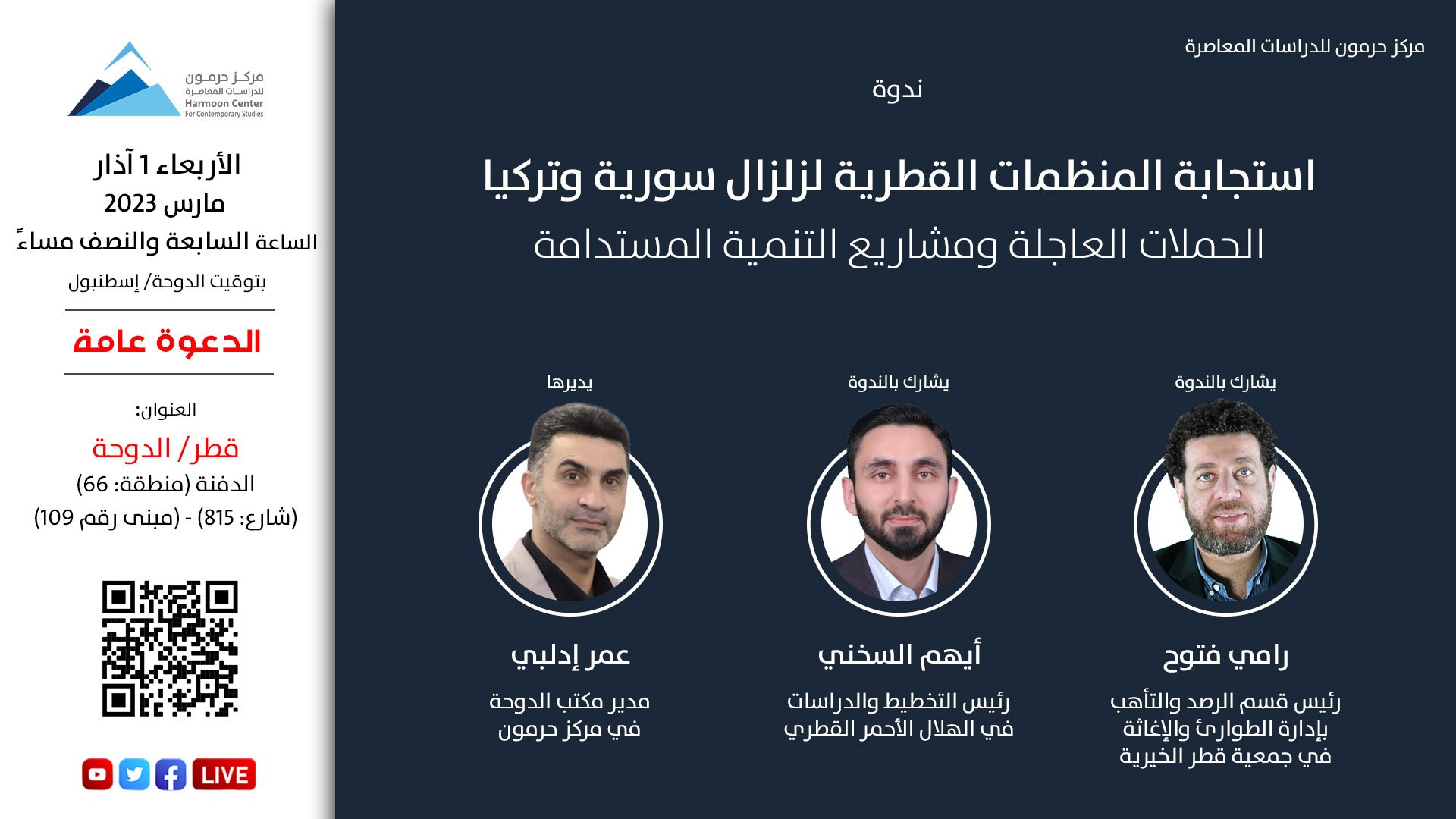 ندوة “استجابة المنظمات القطرية لزلزال سورية وتركيا.. الحملات العاجلة ومشاريع التنمية المستدامة”
