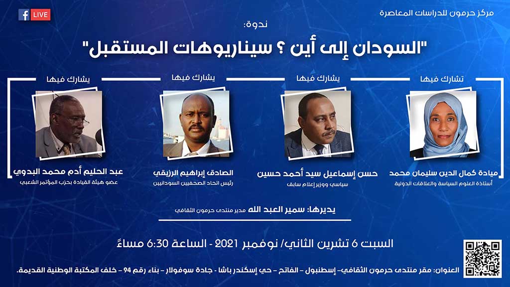 ندوة لمنتدى حرمون الثقافي بعنوان “السودان إلى أين؟ سيناريوهات المستقبل”