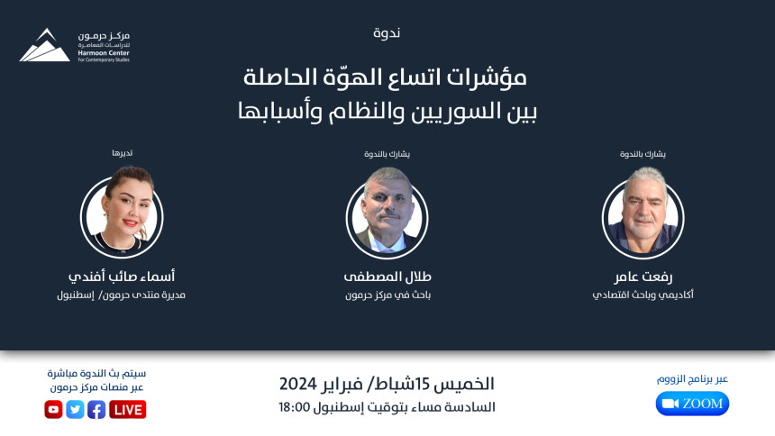 حرمون يناقش نتائج دراسة “مؤشرات اتساع الهوّة الحاصلة بين السوريين والنظام وأسبابها” في ندوة حوارية