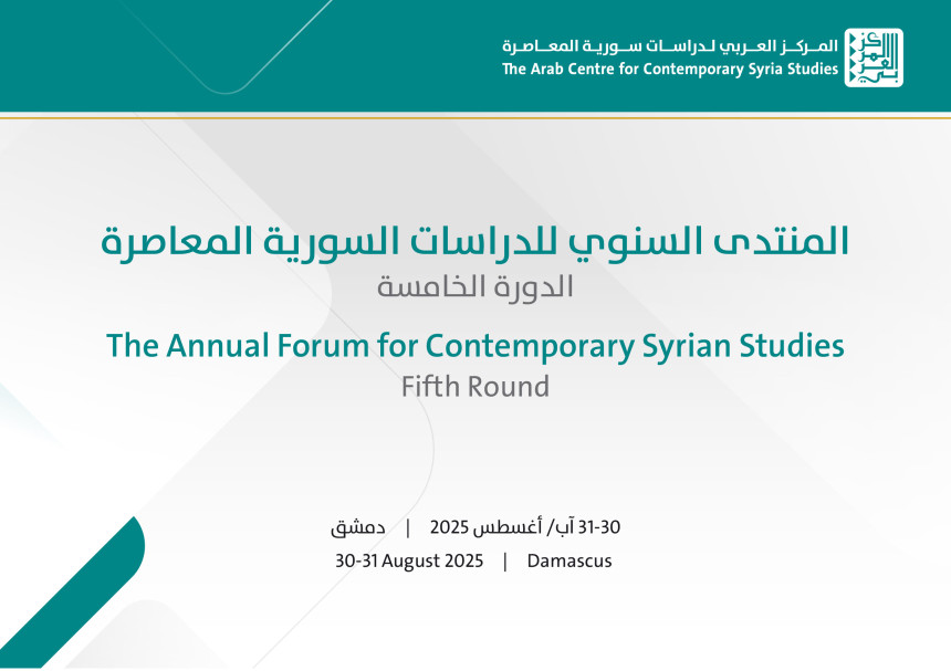 ينظّم المركز العربي لدراسات سورية المعاصرة أعمال المنتدى السنوي للدراسات السورية المعاصرة (الدورة الخامسة)، يومي 30 و31 آب/ أغسطس 2025، في العاصمة السورية دمشق.يتضمّن المنتدى مجموعة من الأوراق المحكّمة التي تتناول قضايا الحوكمة وإعادة الإعمار، وإصلاح التعليم والنقابات، وتحوّلات الخطاب السياسي والديني، وديناميات الطائفية، وأوضاع اللاجئين في دول الجوار والشتات، وأدوار الفاعلين المحليين والدوليين. ويخصّص مجموعة من الورشات لمناقشة قضايا…