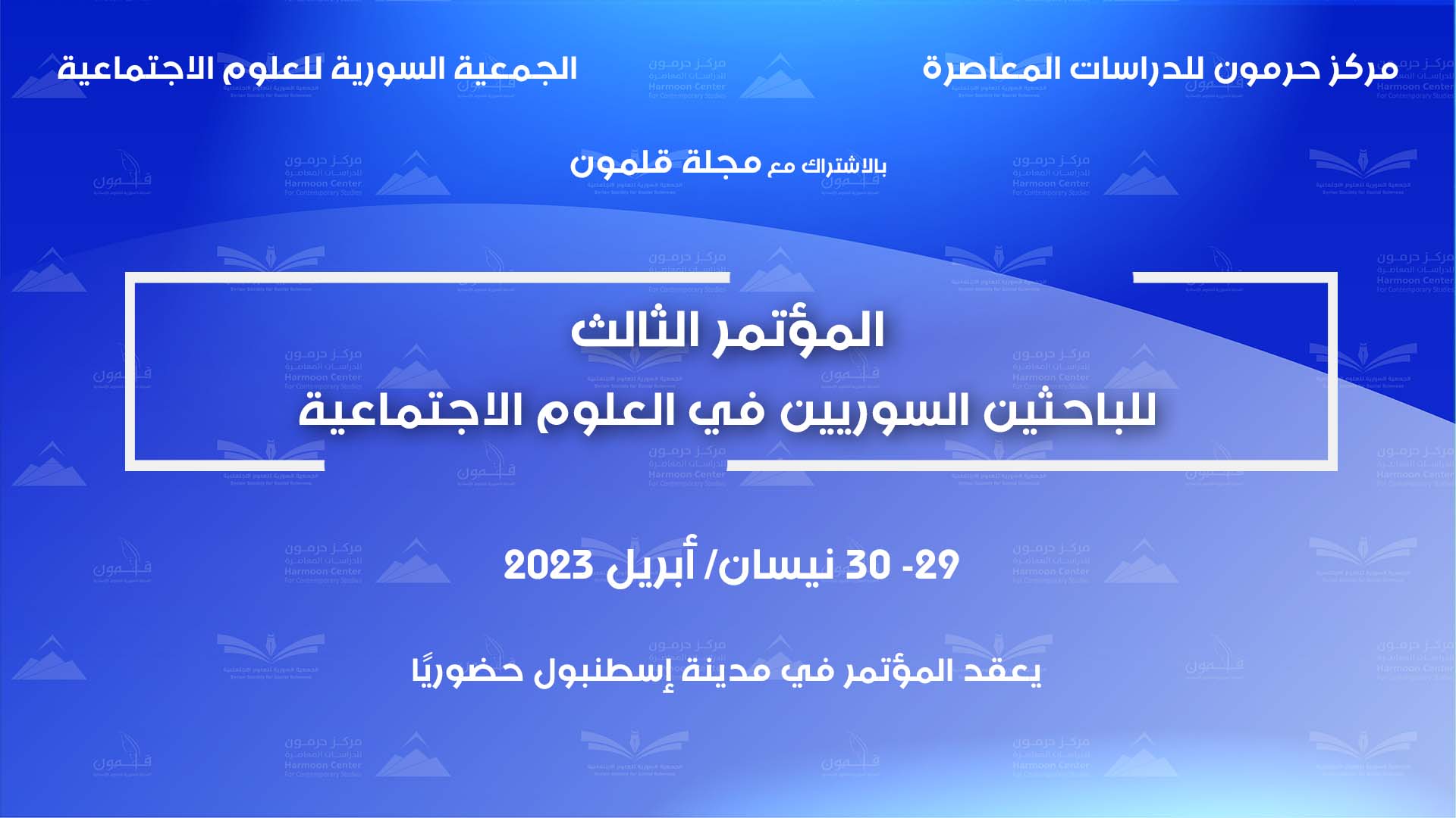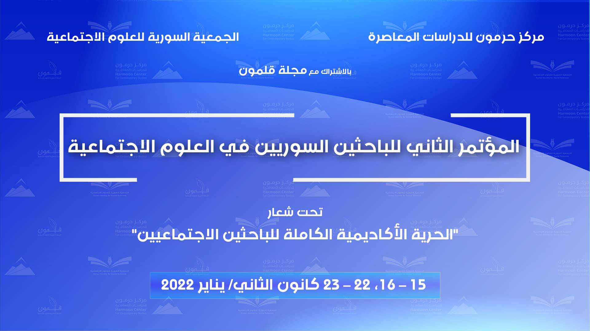 يُعلن مركز حرمون للدراسات المعاصرة، والجمعية السورية للعلوم الاجتماعية، بالاشتراك مع مجلة قلمون، عن عقد المؤتمر الثاني للباحثين السوريين في العلوم الاجتماعية في 14 – 16 كانون الثاني/ يناير 2022.