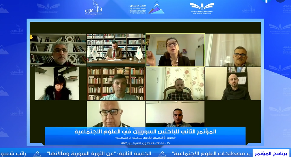 اختُتمت، مساء الأحد 16 كانون الثاني/ يناير 2022، أعمال اليوم الثاني من "المؤتمر الثاني للباحثين السوريين في العلوم الاجتماعية"، الذي ينظمه مركز حرمون للدراسات المعاصرة والجمعية السورية للعلوم الاجتماعية، بالاشتراك مع مجلة قلمون، تحت شعار "الحرية الأكاديمية الكاملة للباحثين الاجتماعيين".