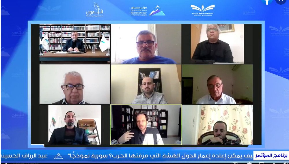 اختُتمت، مساء الأحد 17 كانون الثاني/ يناير 2021، أعمال "المؤتمر الأول للباحثين السوريين في العلوم الاجتماعية"، الذي نظمه مركز حرمون للدراسات المعاصرة والجمعية السورية للعلوم الاجتماعية، بالاشتراك مع مجلة قلمون، تحت شعار "الحرية الأكاديمية الكاملة للباحثين الاجتماعيين".
