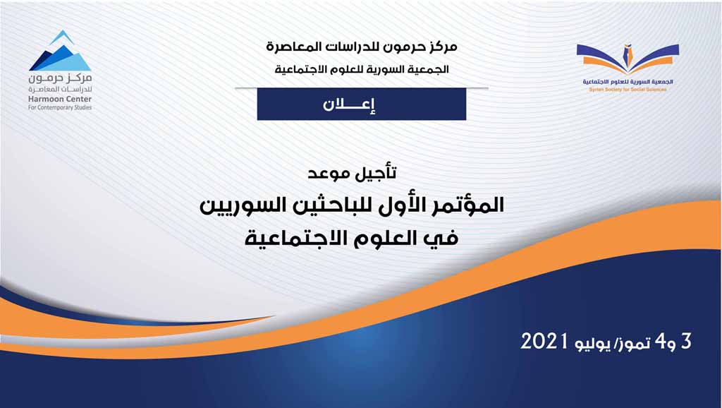 تأجيل "المؤتمر الأول للباحثين السوريين في العلوم الاجتماعية" إلى تاريخ 3 و4 تموز/ يوليو 2021.