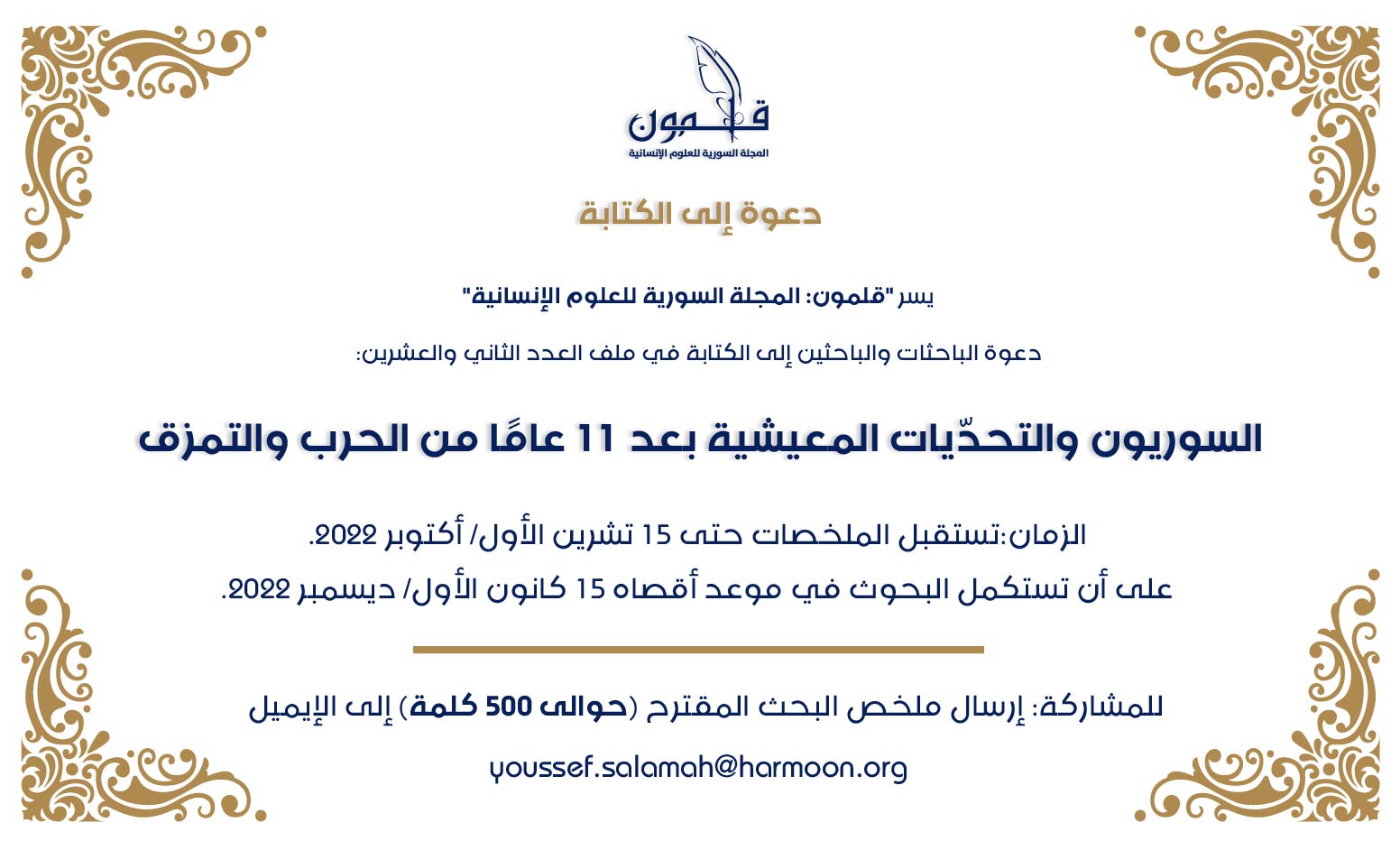 دعوة إلى الكتابة في العدد الثاني والعشرين من مجلة قلمون