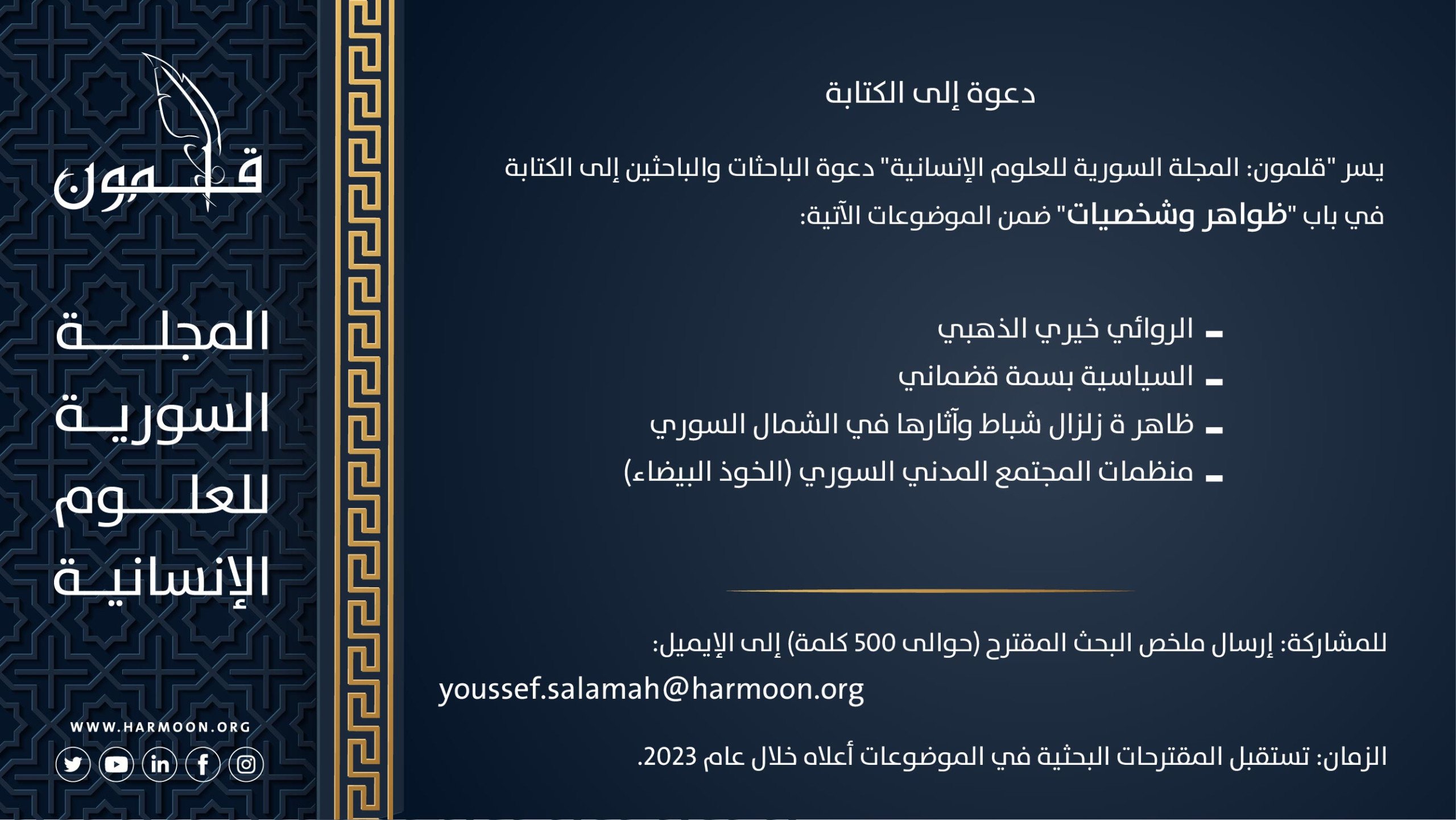 دعوة إلى الكتابة في العدد الثالث والعشرين من مجلة قلمون