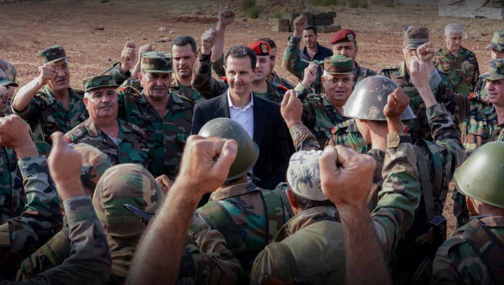 الأسد مع جنود من الجيش في الغوطة - دمشق 18 آذار/ مارس 2018
