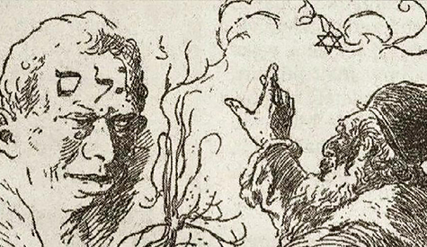 ([3]) غوليم: كائن أسطوريّ عملاق من الطين، أنشأه أحبار اليهود ليدافع عن الشعب اليهوديّ. وهو كائن بلا روح، ثقيل الحركة، يخضع لأوامر من أوجده. المصدر wikipedia.org: ميكولاي آليش. عودة غوليم للحياة